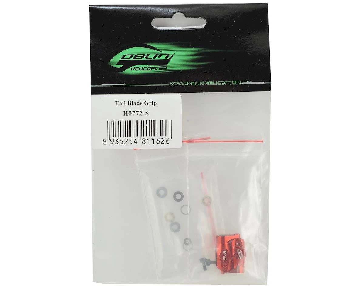 This is an optional SAB Aluminum Tail Blade Grip Set, in red anodized color. The package includes all the required hardware to install this onto the Goblin Fireball or Goblin Mini Comet.