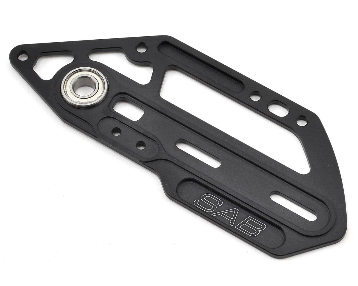 This is a replacement SAB Aluminum Tail Side Plate. This plate includes an installed bearing.