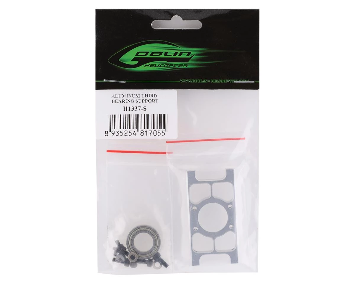 This is a replacement SAB Third Bearing Support Bracket, suited for use with the Goblin Raw 700 Nitro helicopter. Includes bearing, and mounting hardware.