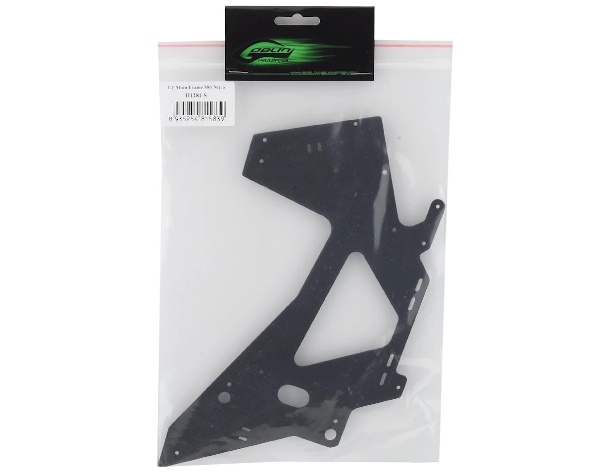 This is a replacement SAB Goblin Kraken 580 Nitro Carbon Fiber Main Frame, intended for use with the 580 Kraken Nitro Helicopter Kit.