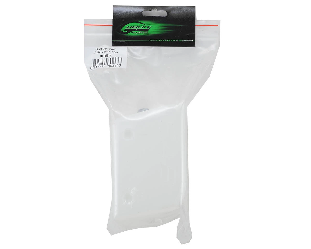 A replacement SAB Fuel Tank and Fuel Stopper suited for use with the SAB Goblin Black Nitro helicopter.
