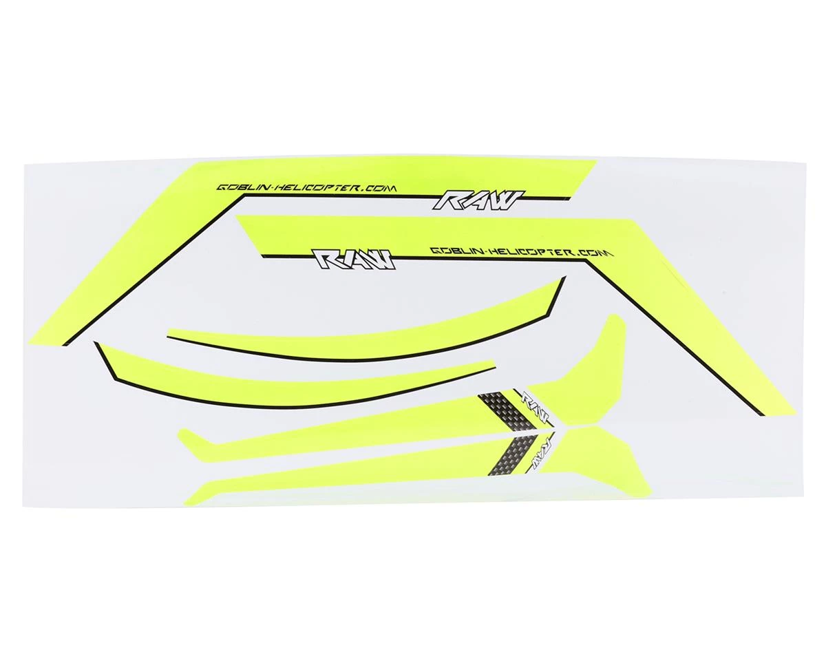 This is a replacement SAB Goblin Raw 700 Yellow Canopy Set. Includes matching yellow decals, and frame mounting hardware.
